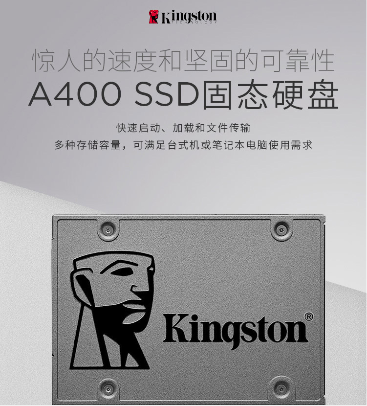 金士顿(Kingston) A400 SSD固态硬盘台式机笔记本 A400固态 480G
