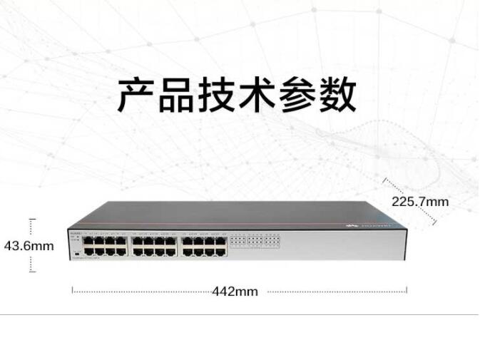 商品属性 [品牌] 华为 [参数] 速度 10/100/10 00BASE-T 网络标准 以太网 产品净重(kg) 3KG 产品尺寸(mm) 442*220*43.6 VLAN 不支持 [型号] S1730S-L24TR-A [商品单位] 台