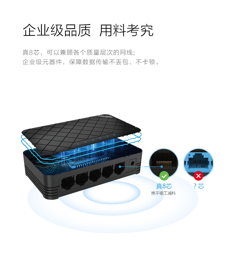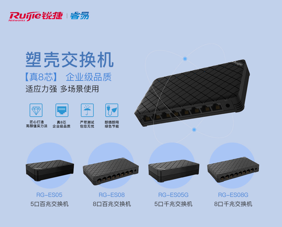 锐捷(Ruijie) 非网管桌面型交换机8口 企业级 网络分流器 RG-ES08G 8口千兆