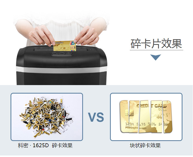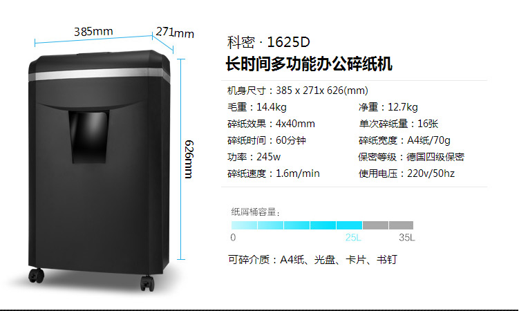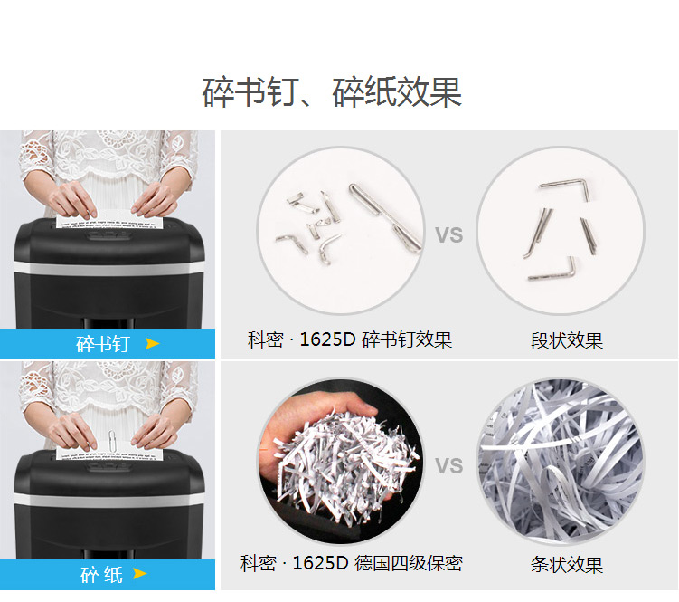 商品属性 [品牌] 科密 [型号] 1625D [入纸宽度] A4纸 [类型] 碎纸机 [商品单位] 台