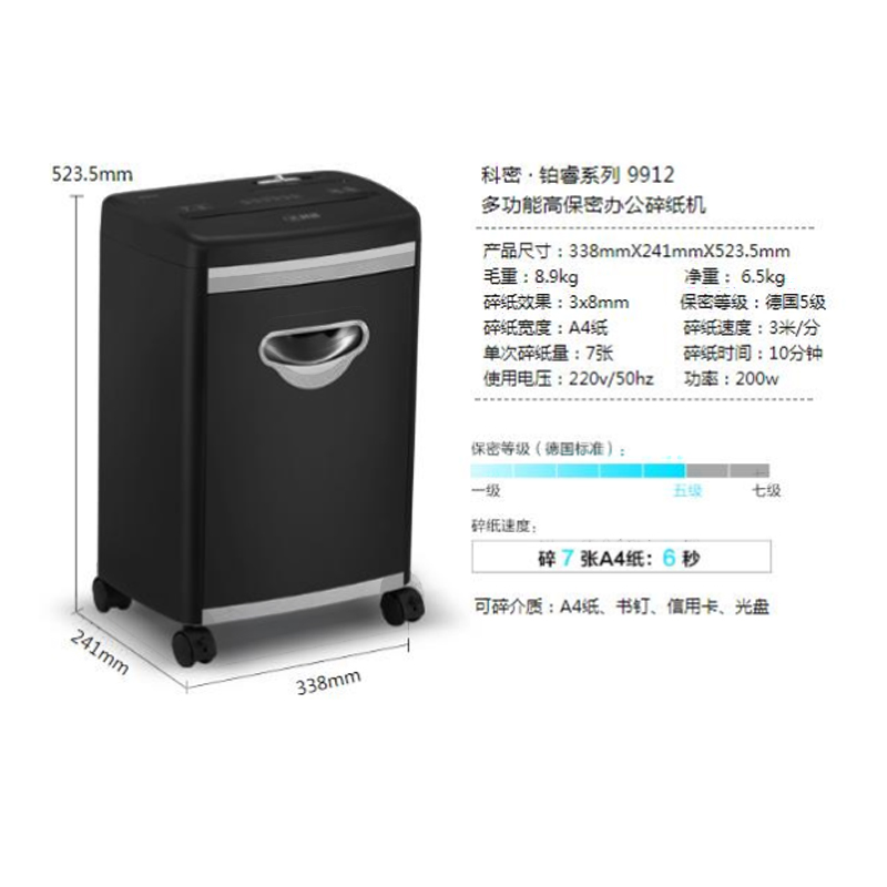 科密 9912 铂睿系列高保密办公碎纸机 黑色 单位:台
