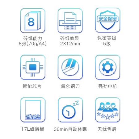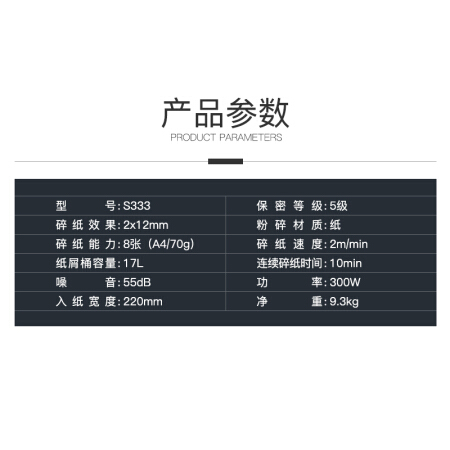 齐心(Comix)碎纸机 德国5级经典保密碎纸机8张续航10min标准静音文件粉碎机17L S333碎卡/订书针/可拆信封