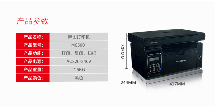 奔图(PANTUM)M6500 黑白激光多功能打印机 打印;复印;扫描