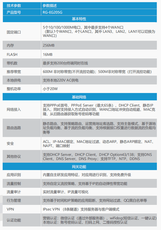 锐捷(Ruijie)千兆网关路由器企业级 双WAN口 AC无线控制器 RG-EG205G