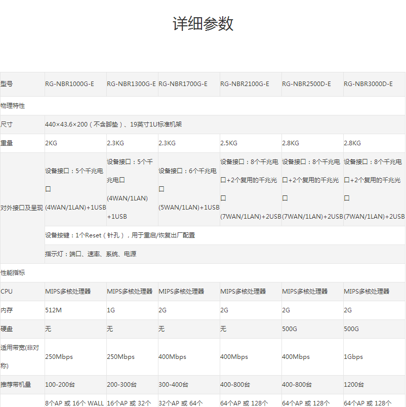 锐捷RG-NBR3000D-E 企业级网关路由器8个电口 2个光口 推荐待机1200