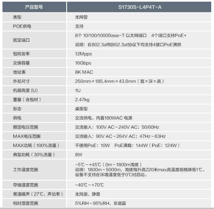 华为 交换机 8口千兆以太网 4口POE供电 即插即用 S1730S-L4P4T-A