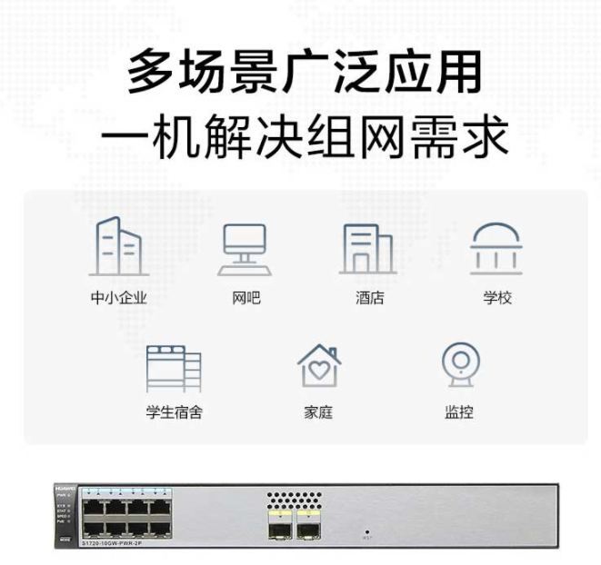 华为企业级交换机S1720-10GW-PWR-2P WEB网管8口千兆以太网+2口千兆光 POE供电网络交换机