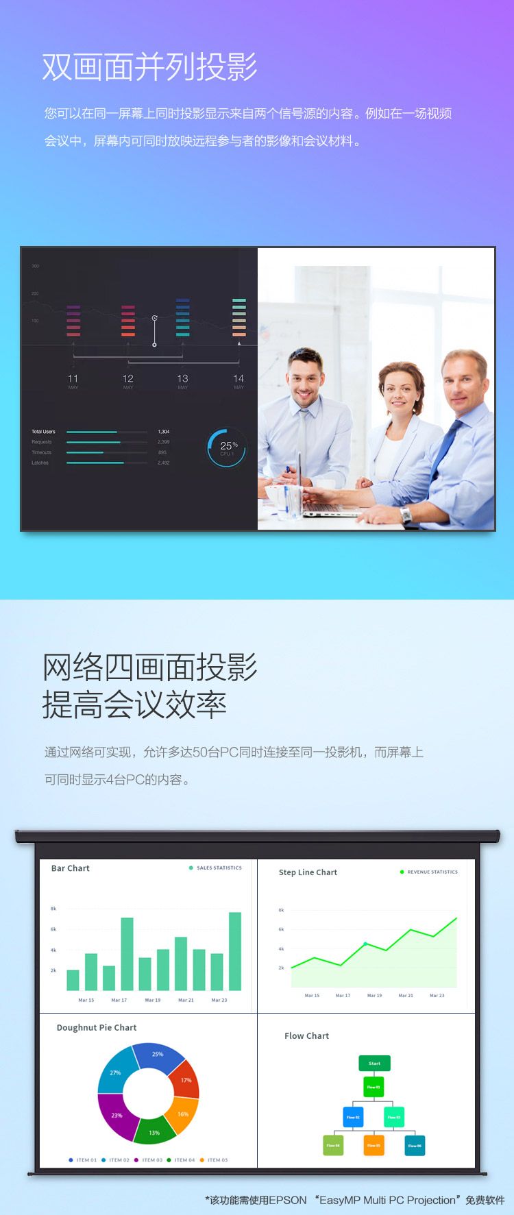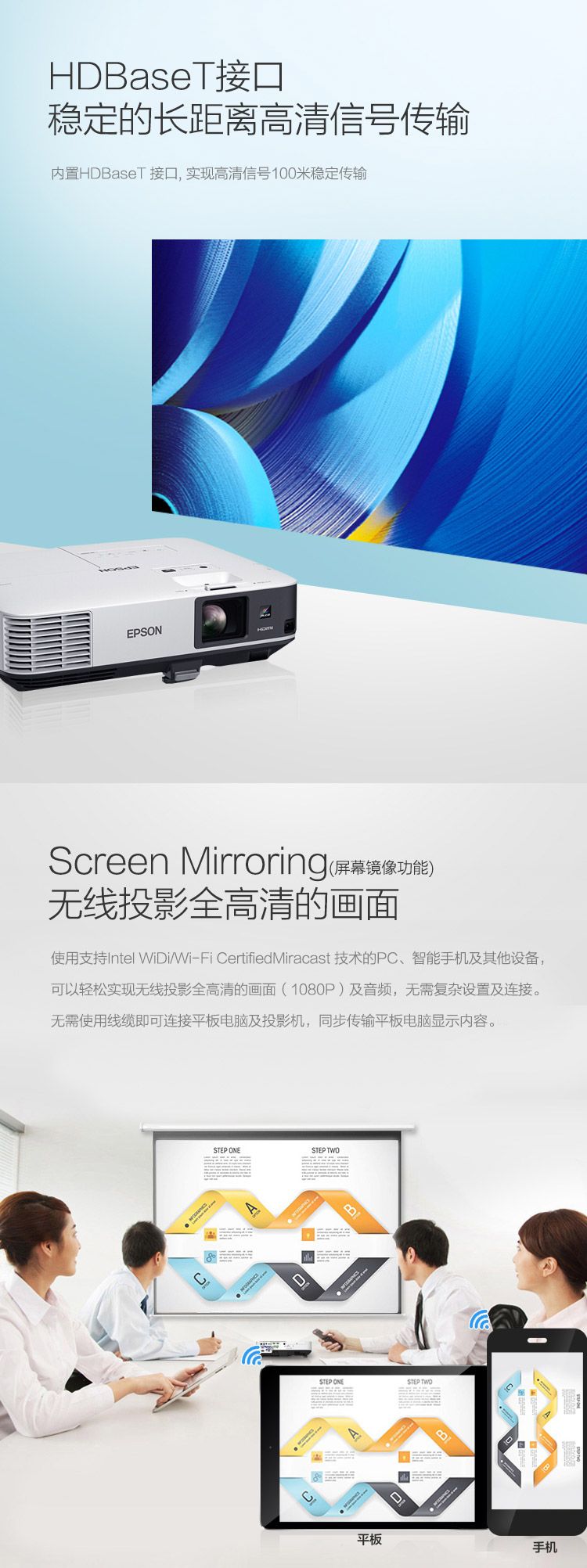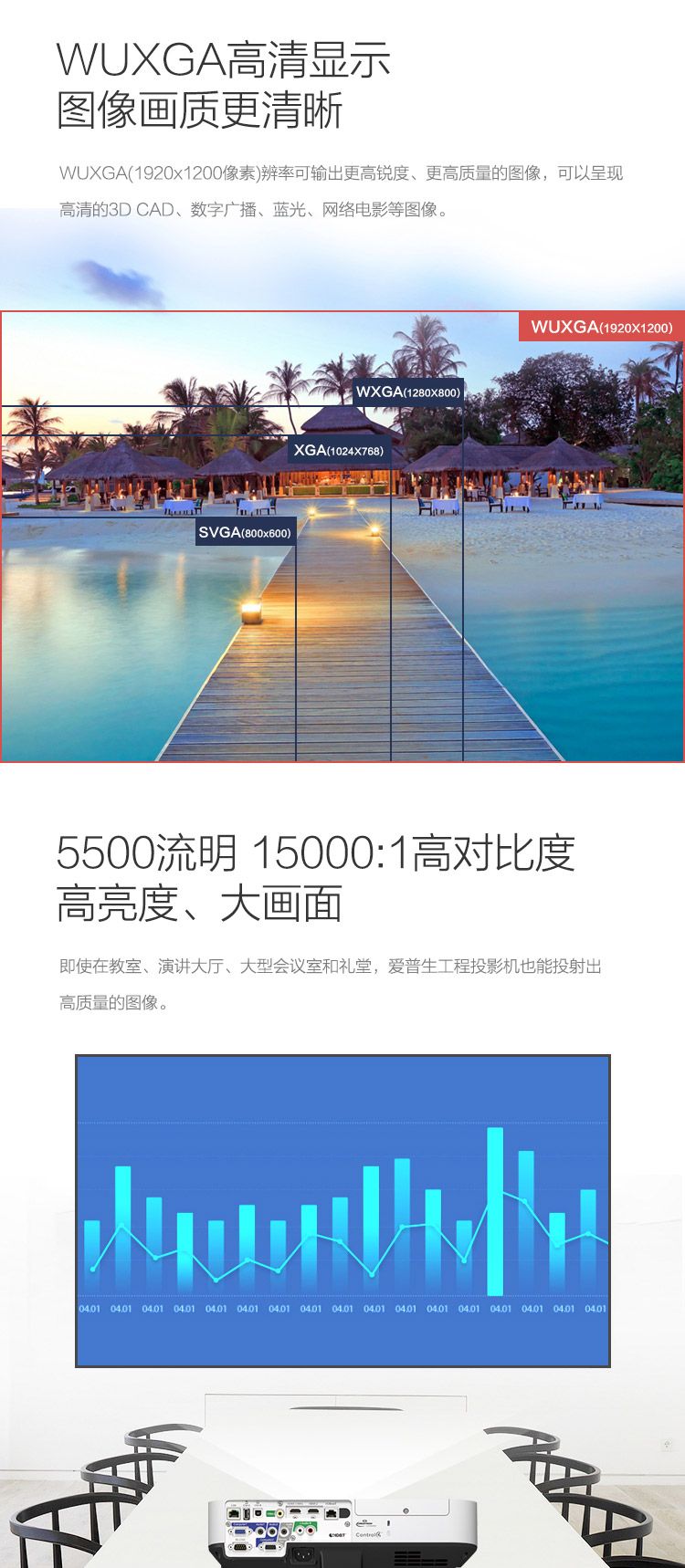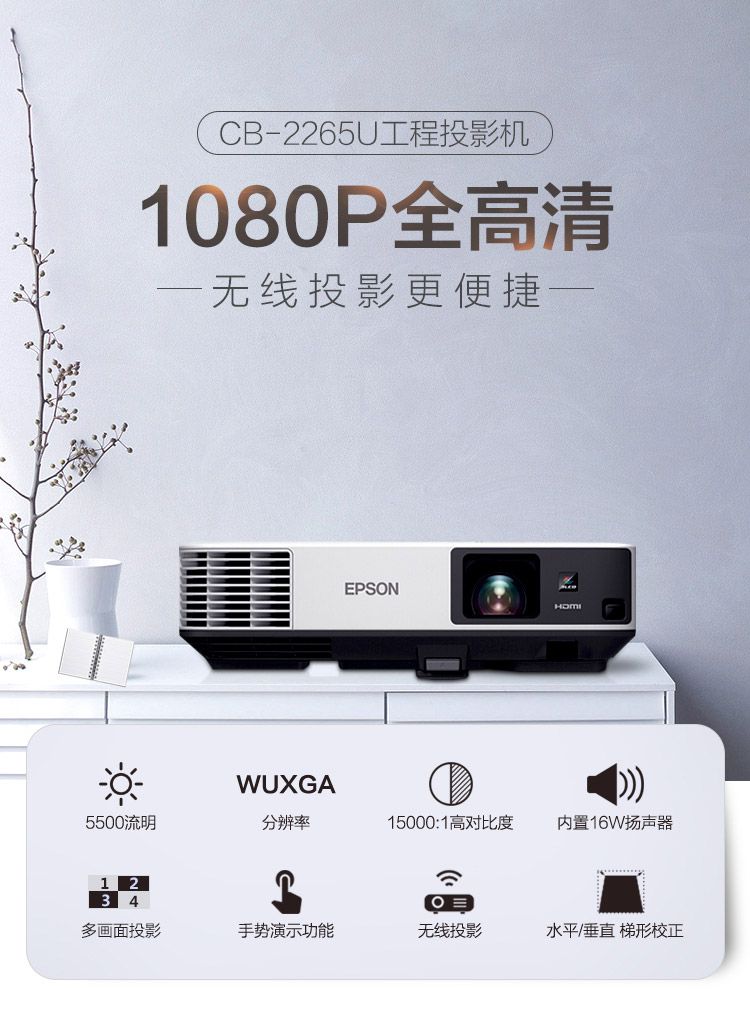 爱普生(EPSON)CB-2265U投影仪(含120寸幕布+吊架安装)