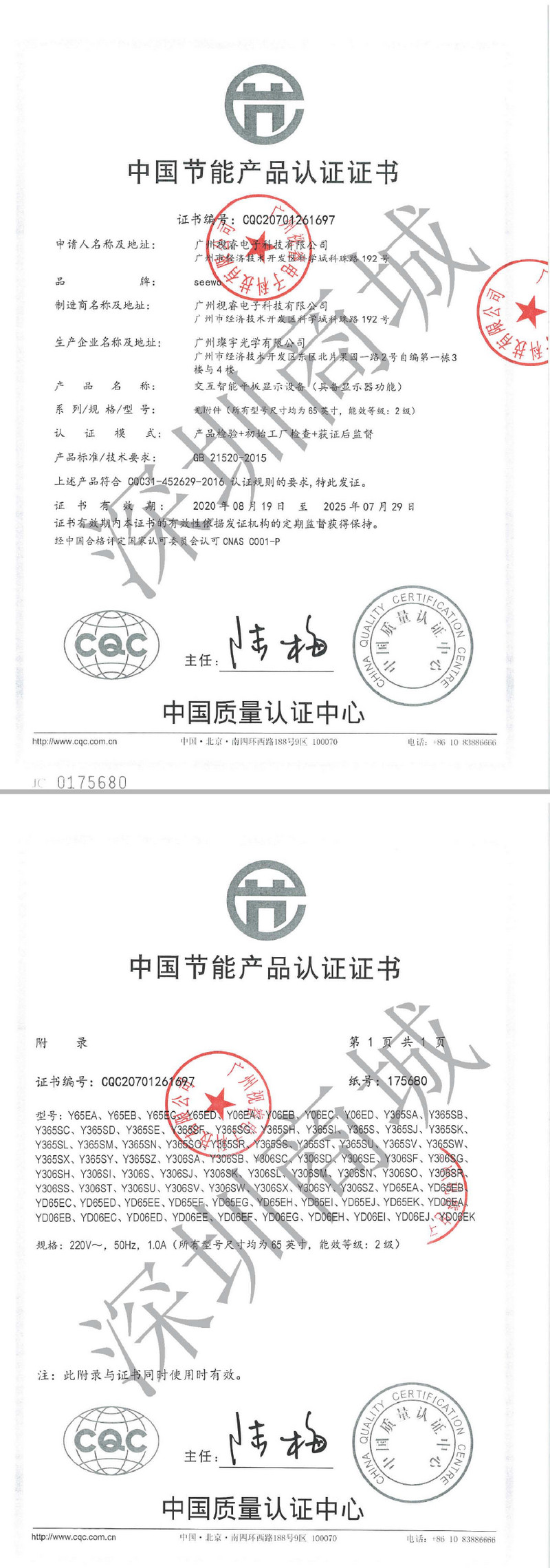 商品属性 [品牌] 希沃 [型号] Y365SA [商品单位] 台 [节能产品证书编号] CQC20701261697