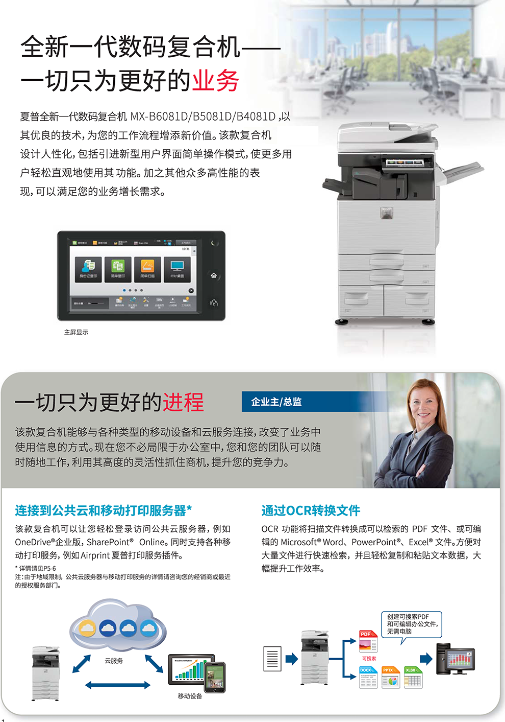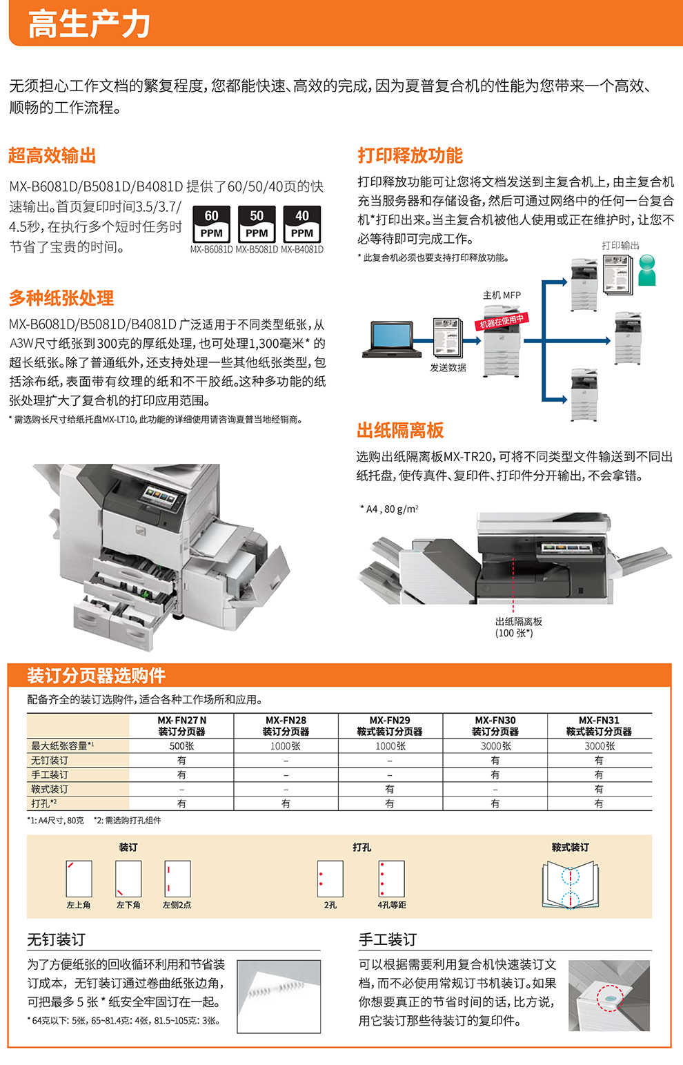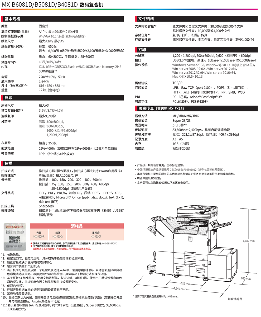 夏普(SHARP) MX-B6081D黑白数码复印机(主机+双面送稿器+三纸盒带落地工作台DE26N+无线wifi)