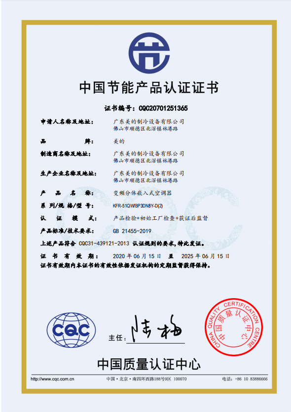 商品属性 [品牌] 美的 [型号] KFR-51QW/BP3DN8Y-D(2) [商品单位] 台 [节能产品证书编号] CQC20701251365