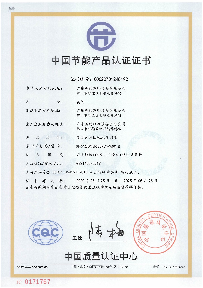 商品属性 [品牌] 美的 [型号] KFR-120LW/BP3SDN8Y-PA401(2) [商品单位] 台 [节能产品证书编号] CQC20701248192