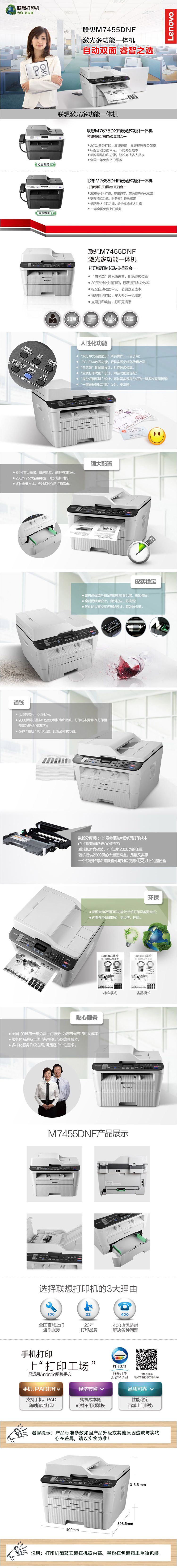 联想激光多功能一体机M7455DNF(打印、复印、扫描、传真) 自动双面打印
