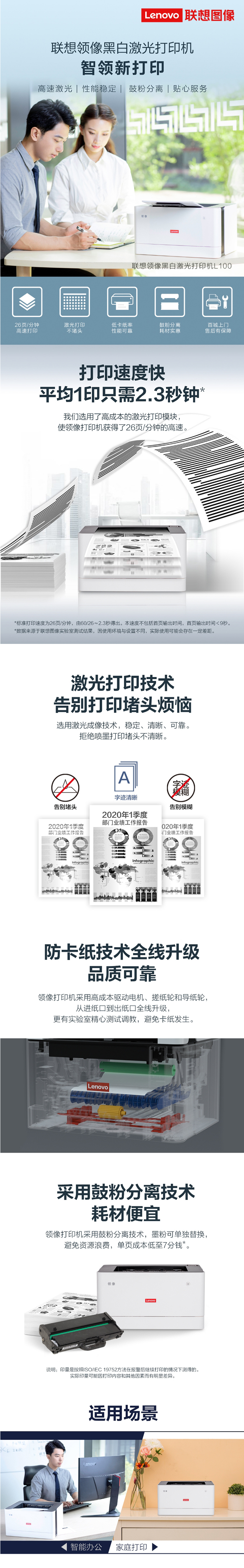 当前位置: 首页 > 政采分类 > 电脑、办公设备 > 办公设备 > 打印机 > A4黑白激光打印机 > 联想L100 黑白激光自动双面打印机 A4打印 USB打印