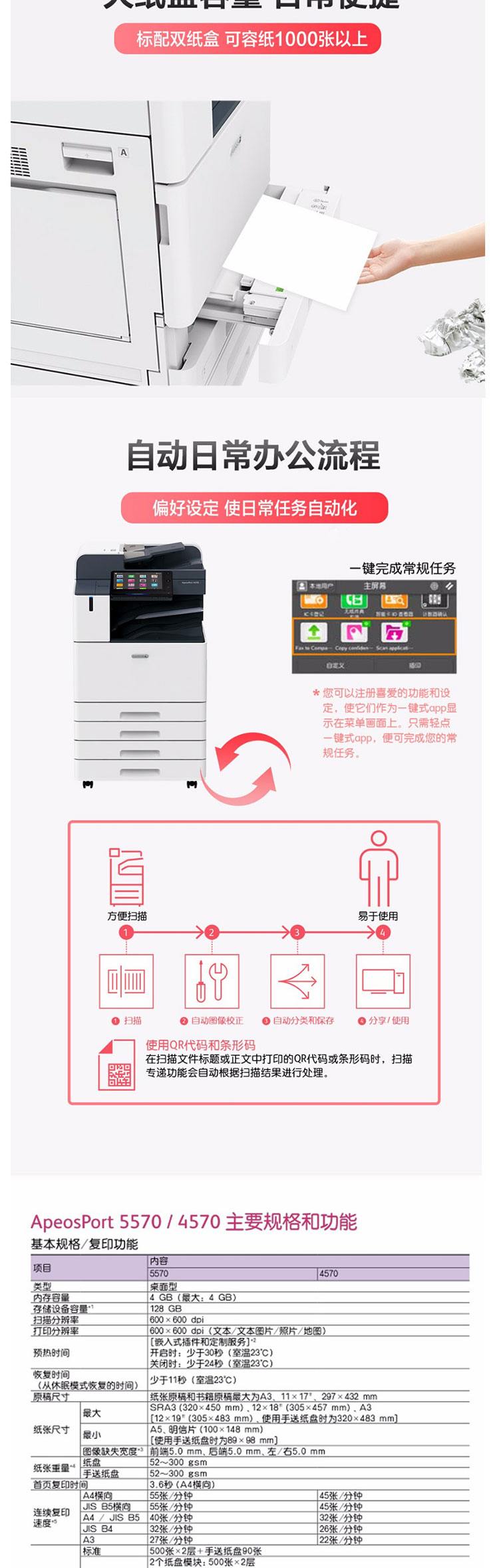 富士施乐 ApeosPort 4570 CPS 2Tray 黑白复印机(双纸盒/双面器/输稿器/USB组件/工作台/一年保修/含内嵌授权模块软件)