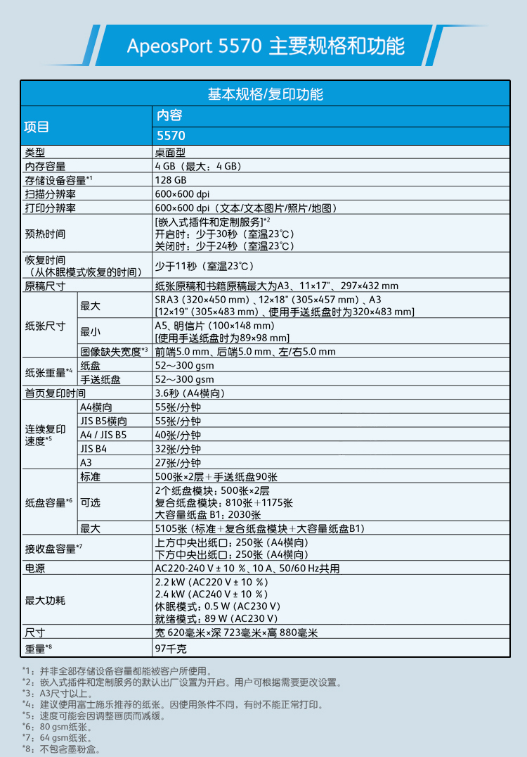 富士施乐 ApeosPort 5570 CPS 2Tray 黑白激光复合复印机(双纸盒/双面器/自动输稿器/B3装订器/工作台/保修一年)