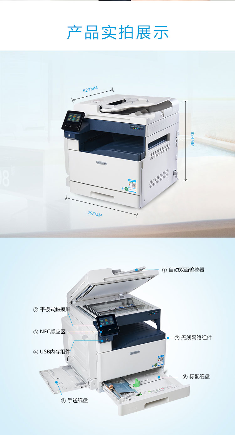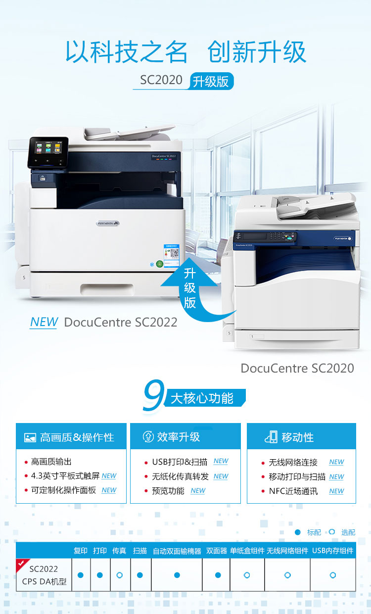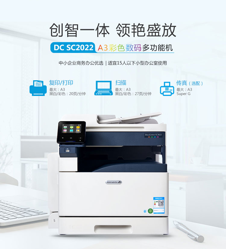 富士施乐 DocuCentre SC2022CPS DA 彩色激光复合复印机(单纸盒/双面器/自动输稿器/工作台/保修一年)