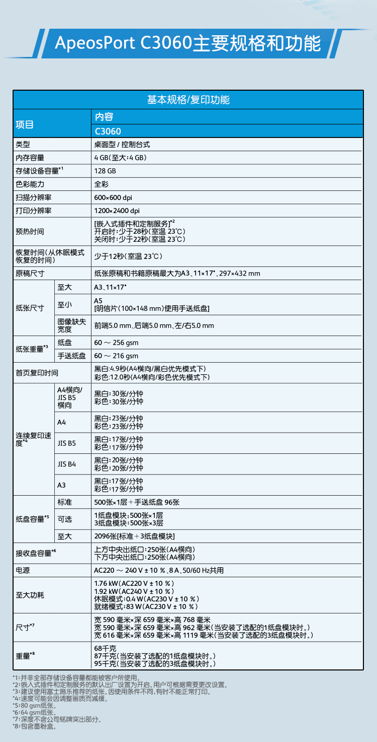 当前位置: 首页 > 政采分类 > 电脑、办公设备 > 办公设备 > 复印机 > 高速数码机 > 富士施乐 ApeosPort C3060 CPS 4Tray 彩色激光复合复印机(四纸盒/双面器/自动输稿器/USB组件/侧工作台/保修一年)