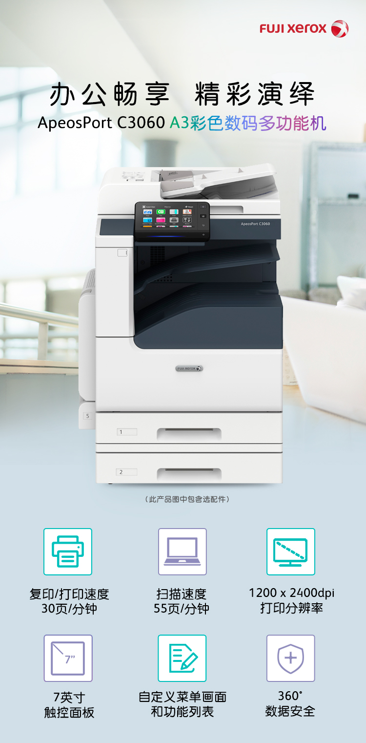 富士施乐 ApeosPort C3060 CPS 4Tray 彩色激光复合复印机(四纸盒/双面器/自动输稿器/USB组件/侧工作台/保修一年)