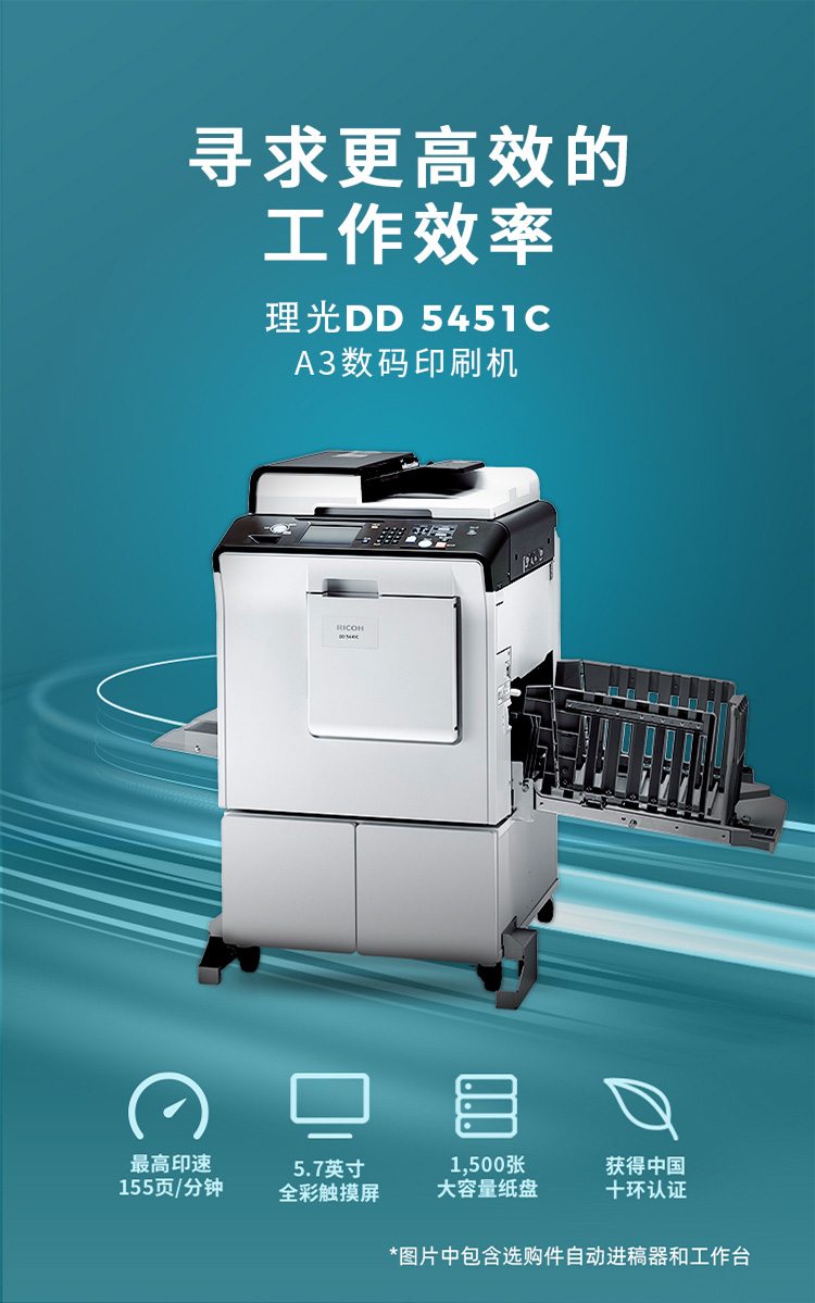 理光(Ricoh)DD5451C 速印机 A3数码印刷机(含盖板+网络打印卡+纸条分页器+1套高质油墨版纸+工作台)