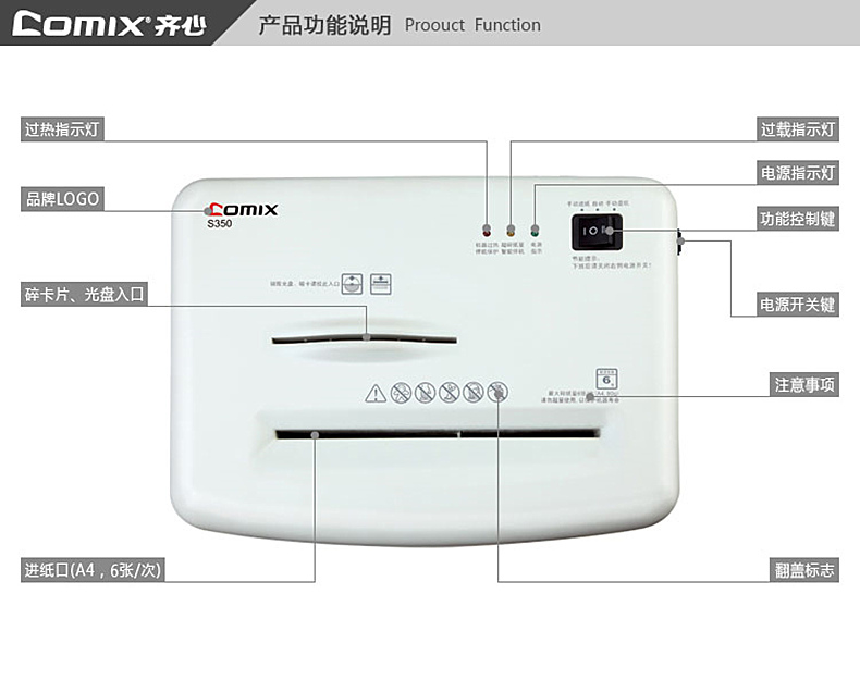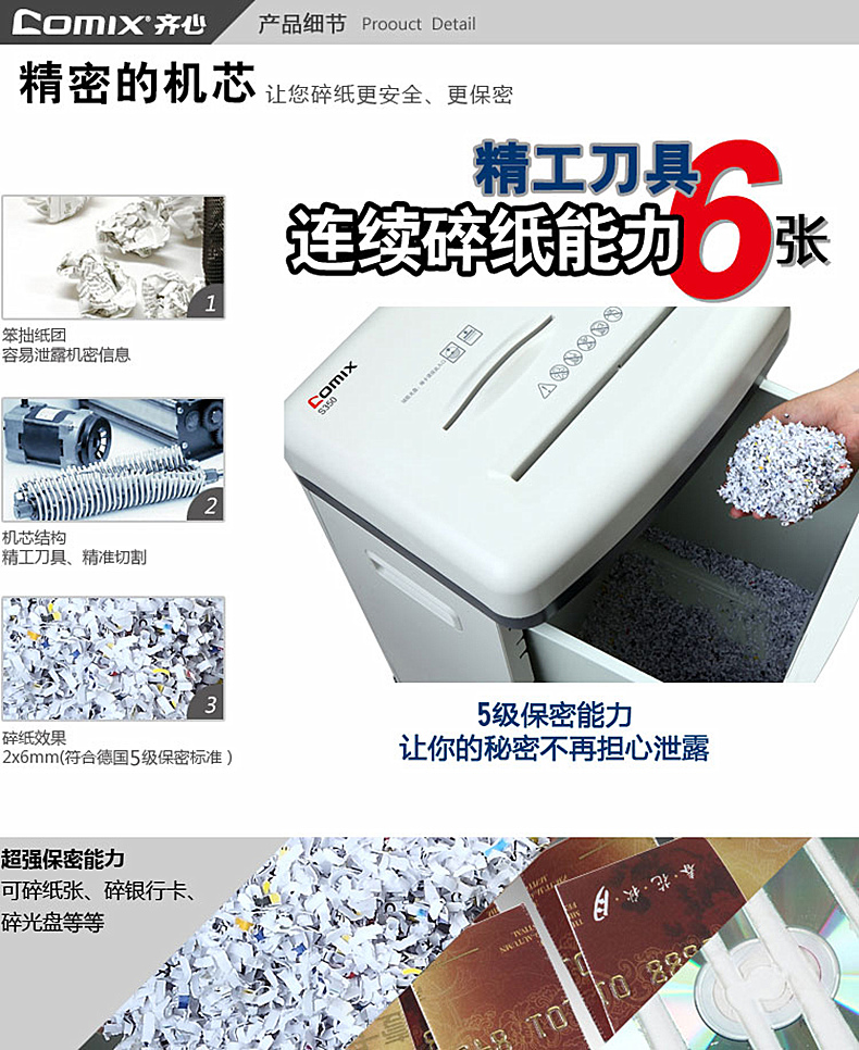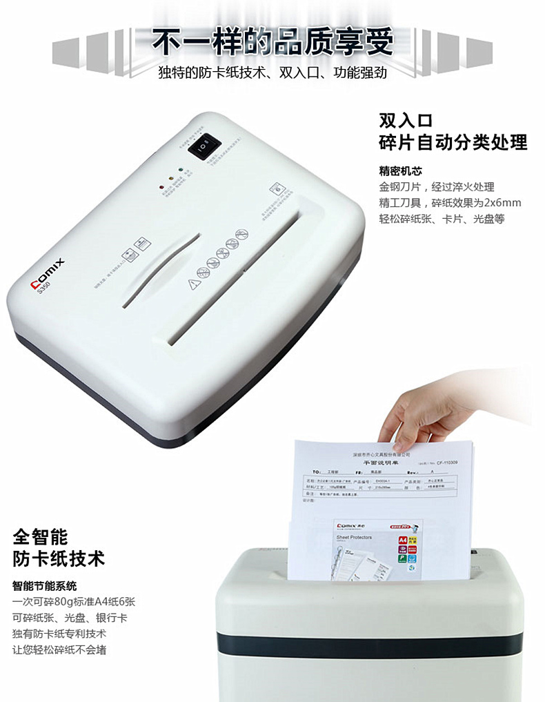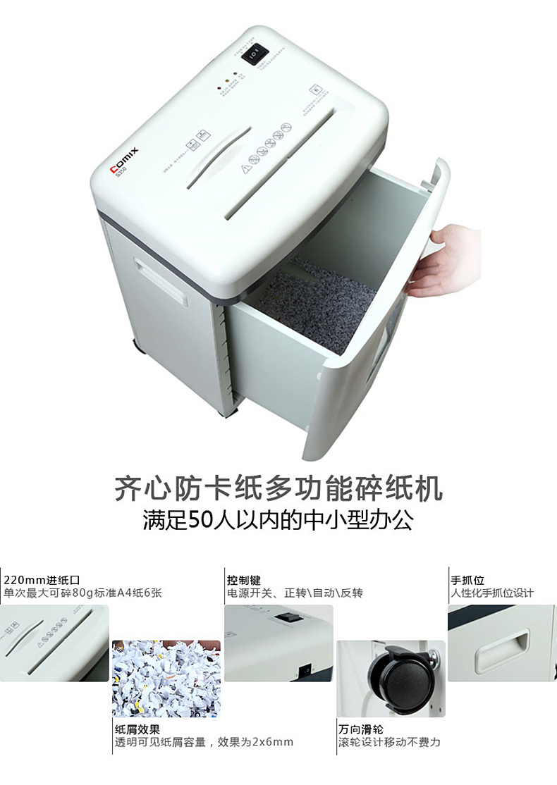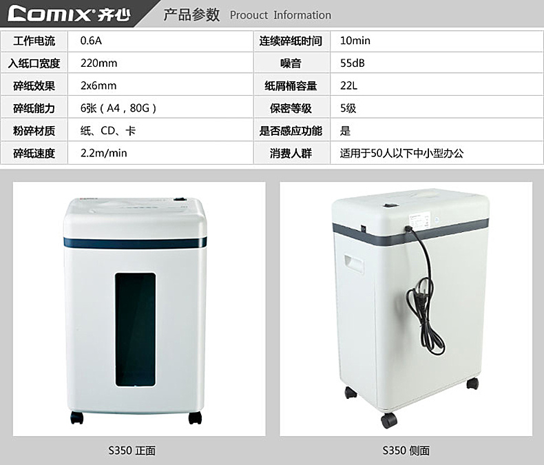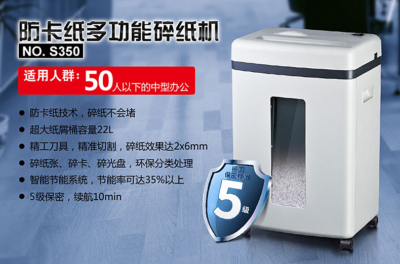 齐心防卡纸碎纸机22L S350 碎卡/光盘