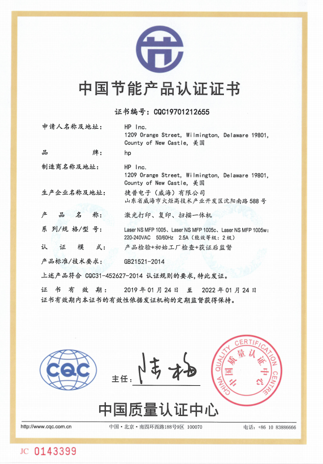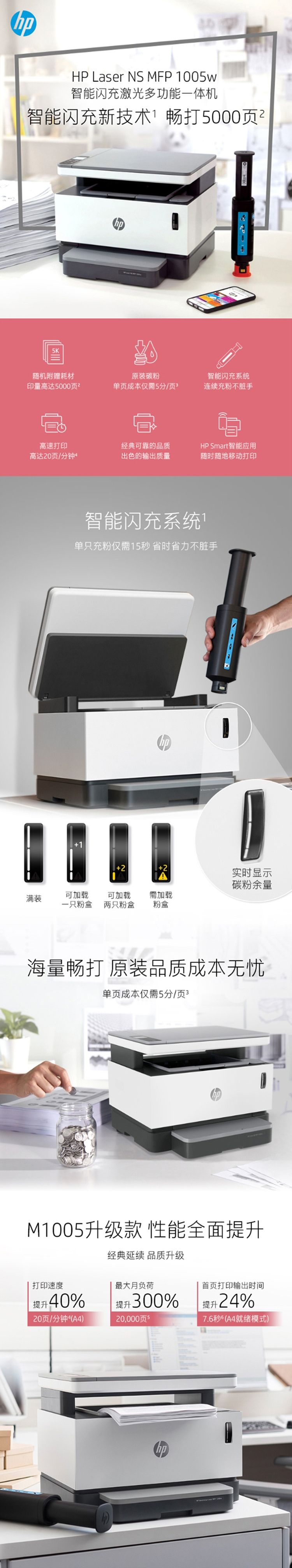 商品属性 [品牌] 惠普 [型号] Laser NS MFP 1005w [商品单位] 台 [节能证书编号] CQC19701212655