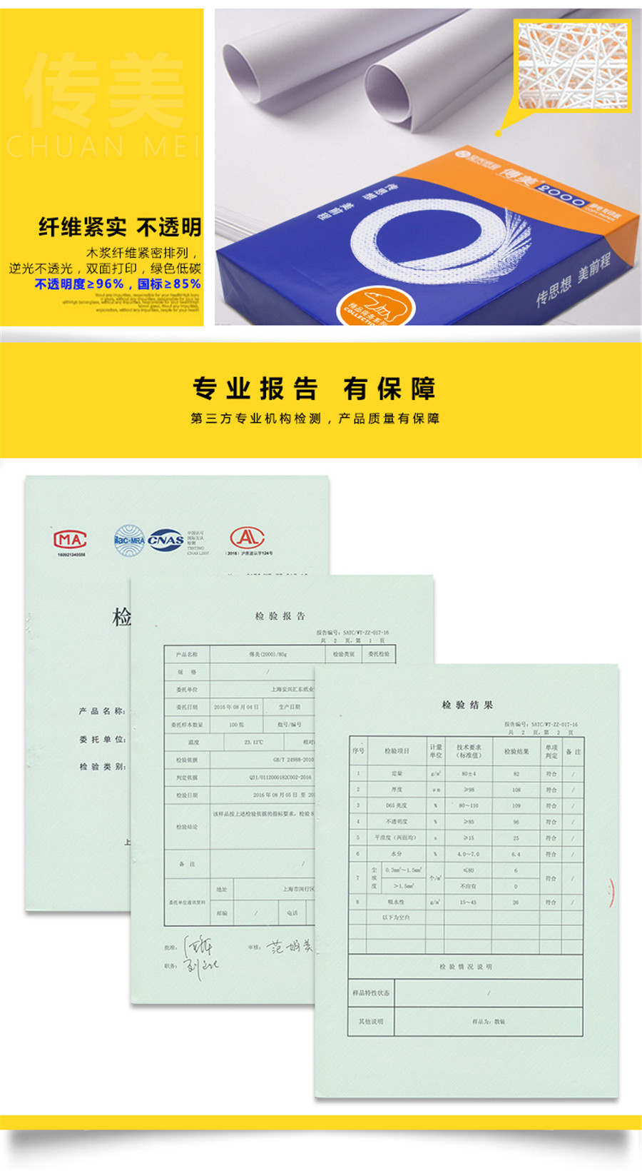 传美2000复印纸 A4 80G 500张/包 5包/箱 单位:箱