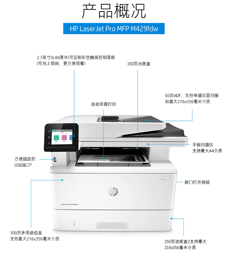 惠普 LaserJet Pro M429fdn 打印复印扫描传真 激光多功能一体机
