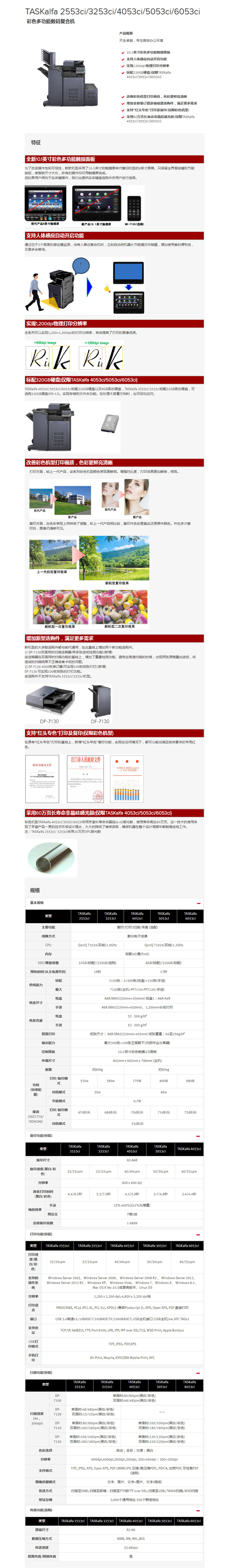 TASKalfa 4053ci,DP-7100、CB-7111、DF-7110、AK-7110、BF-730、三年质保