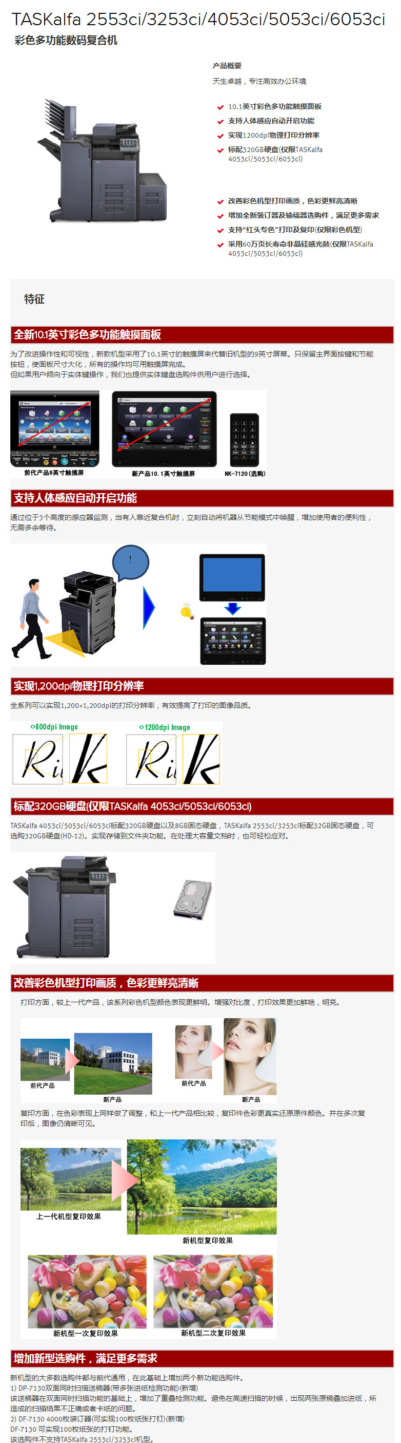 本产品包含:TASKalfa 5053ci、DP-7100、CB-7111、三年质保