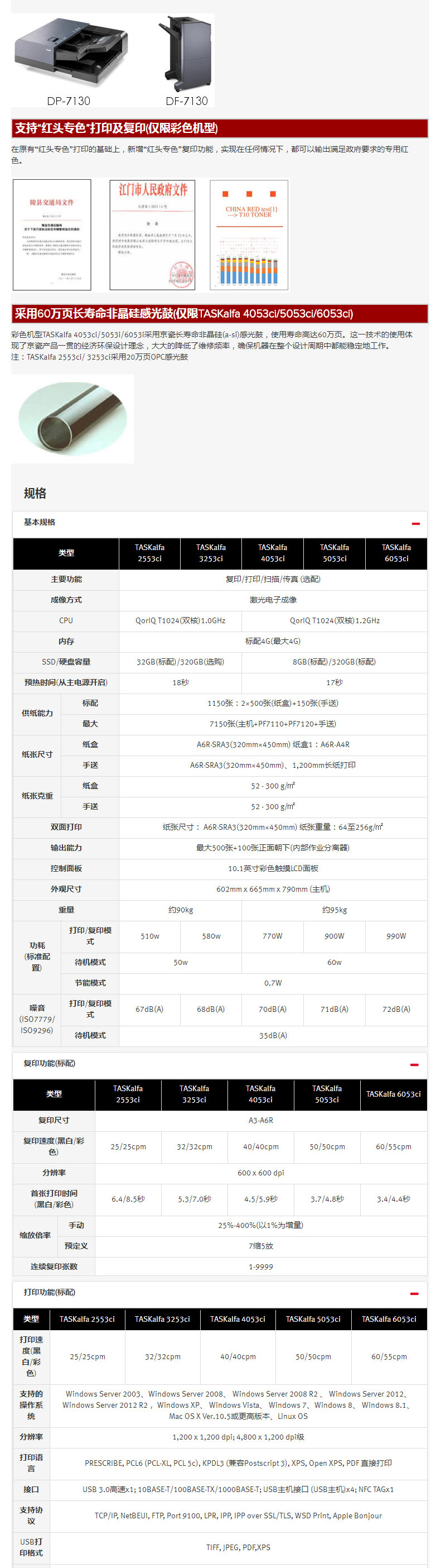 本产品包含:TASKalfa 5053ci、DP-7100、CB-7111、DF-7120、AK-7110三年质保
