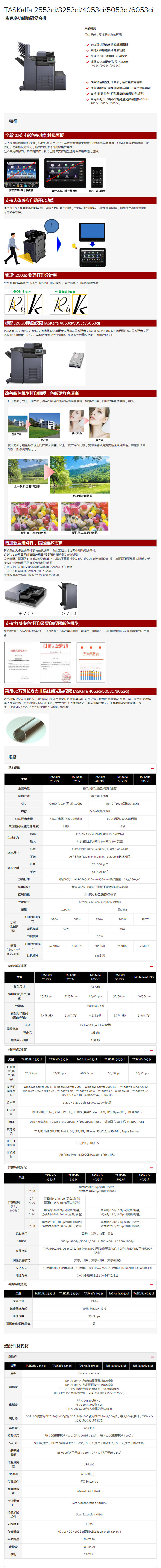 本产品包含:TASKalfa 6053ci、DP-7100、CB-7111、Scan Extension Kit(A)AC、三年质保