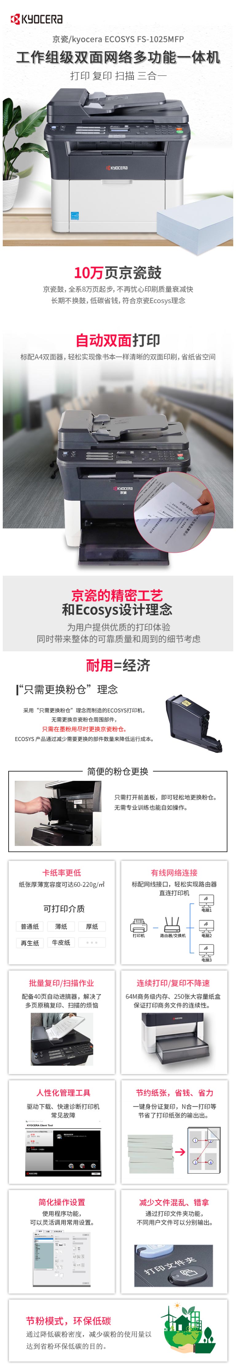京瓷(KYOCERA)ECOSYSFS-1025MFP 激光一体机 (打印 复印 扫描)