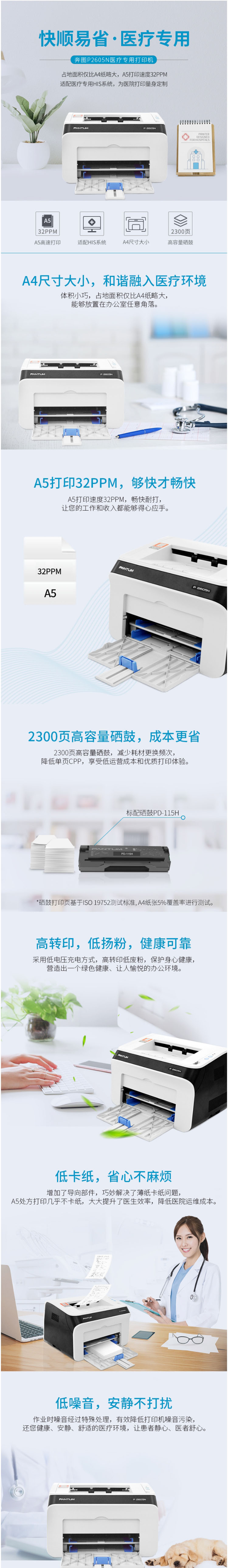 商品属性 [品牌] 奔图 [型号] P2605N [打印分辨率] 1200×1200DPI [黑白打印速度] 24PPM [最大打印幅面] A4 [自动双面打印] 不支持 [质保时间] 1年 [耗材类型] 一体式硒鼓 [售后服务内容] 1年质保 [数据接口] 高速 USB 2.0 ; 有线网络:IEEE 802.3 10/100Base-Tx ; [随机附件] 标配 [节能证书编号] CQC18701199091 [商品单位] 台