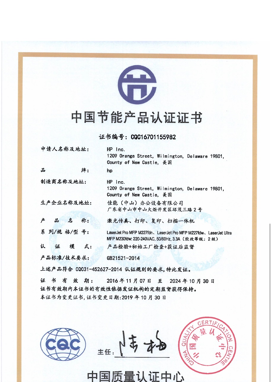 [节能证书编号] CQC16701155982