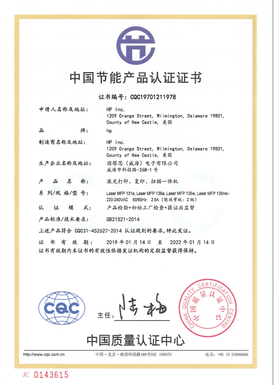 [节能证书编号] CQC19701211978
