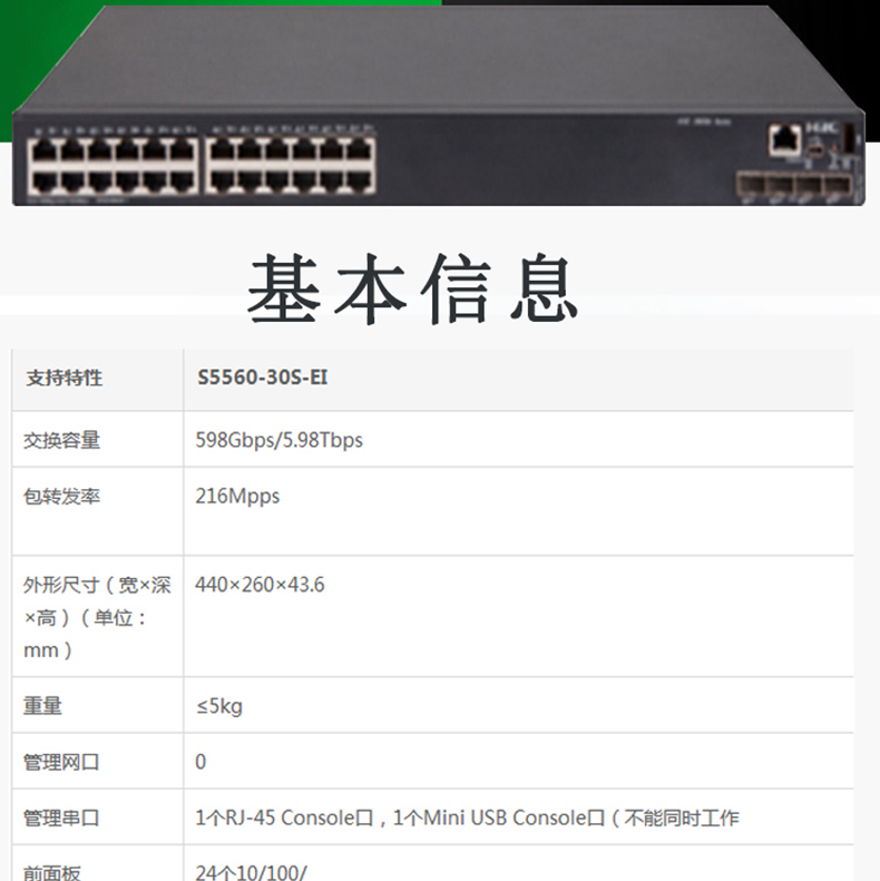 华三LS-5560-30S-EI 24口全千兆三层网管企业级核心网络交换机万兆上行端口
