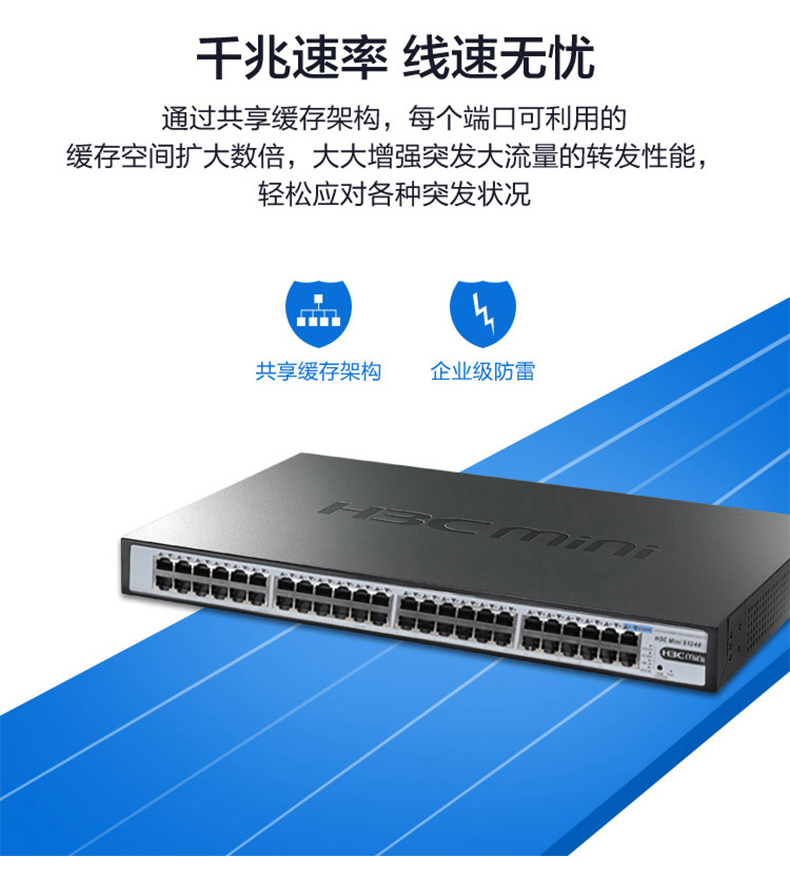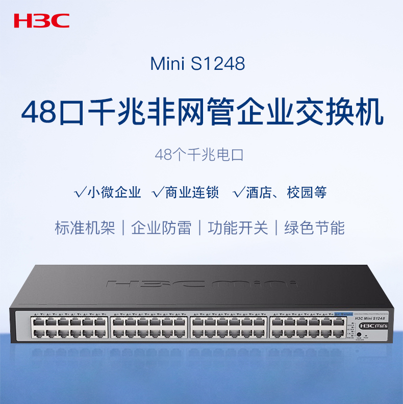 华三 Mini S1248 48口全千兆二层非网管机架式企业级网络交换机
