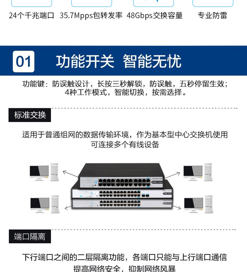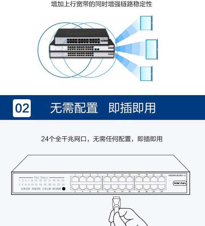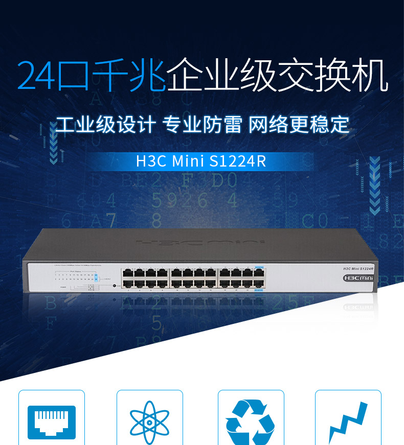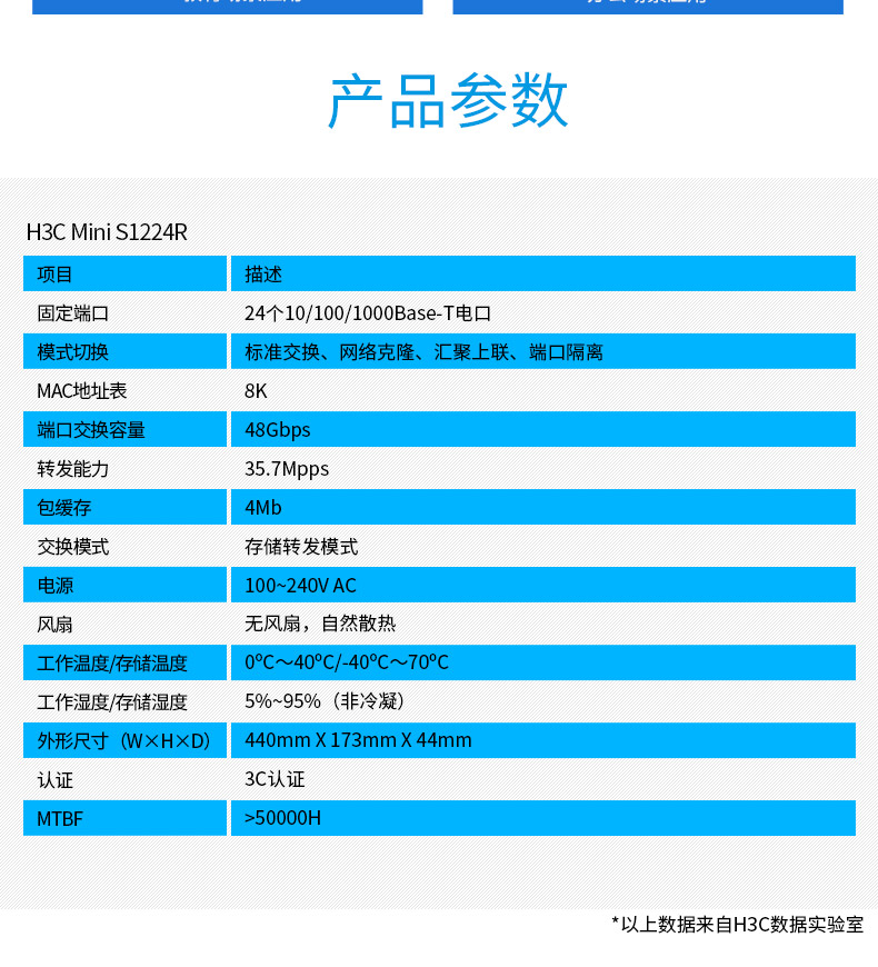 商品属性 [品牌] 华三 [参数] 交换方式 存储转发 交换机网络标准 IEEE 802.3u,IEEE 802.3,IEEE 802.3ab 网络管理 不支持 [型号] Mini S1224R [商品单位] 台