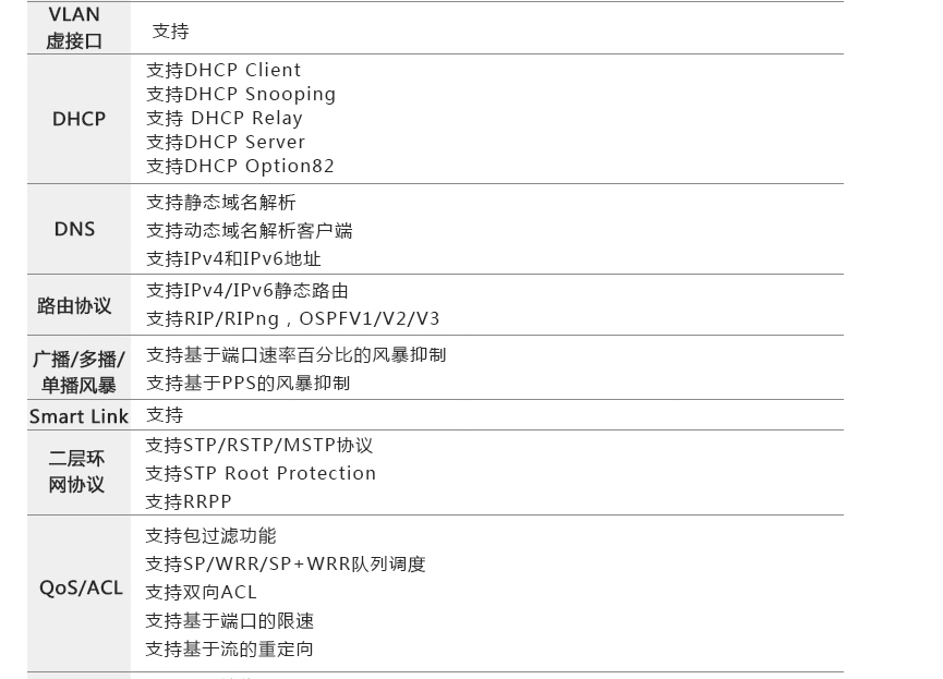 [参数] 交换方式 存储转发 交换机网络标准 SNMP,IEEE 802.1x,IEEE 802.1p,IEEE 802.1Q,IEEE 802.3ab,IEEE 802.1D,IEEE 802.3x,IEEE 802.3z,IEEE 802.3u,IEEE 802.3