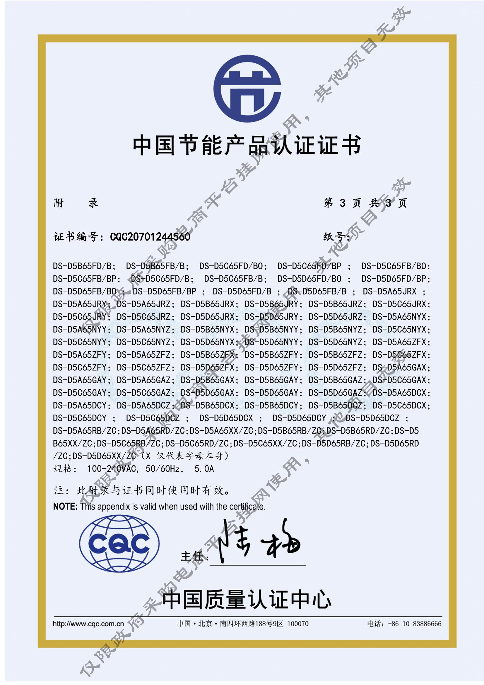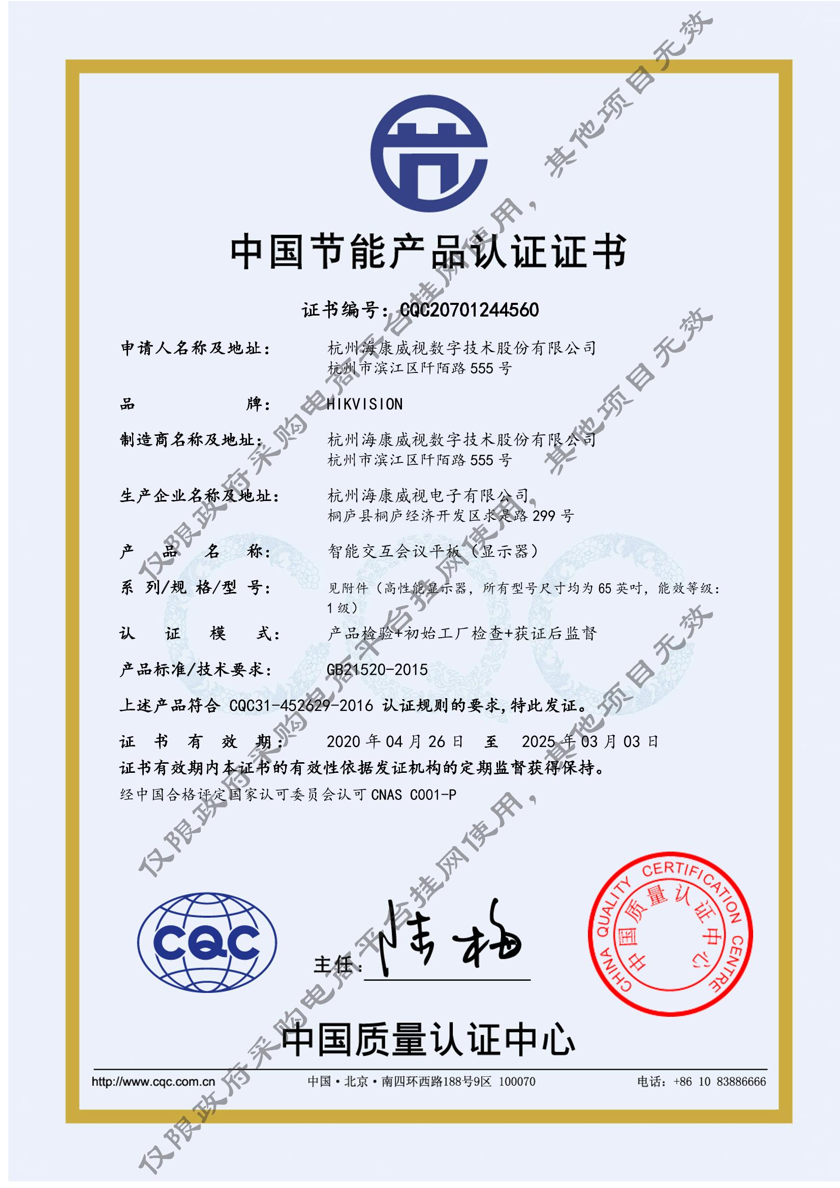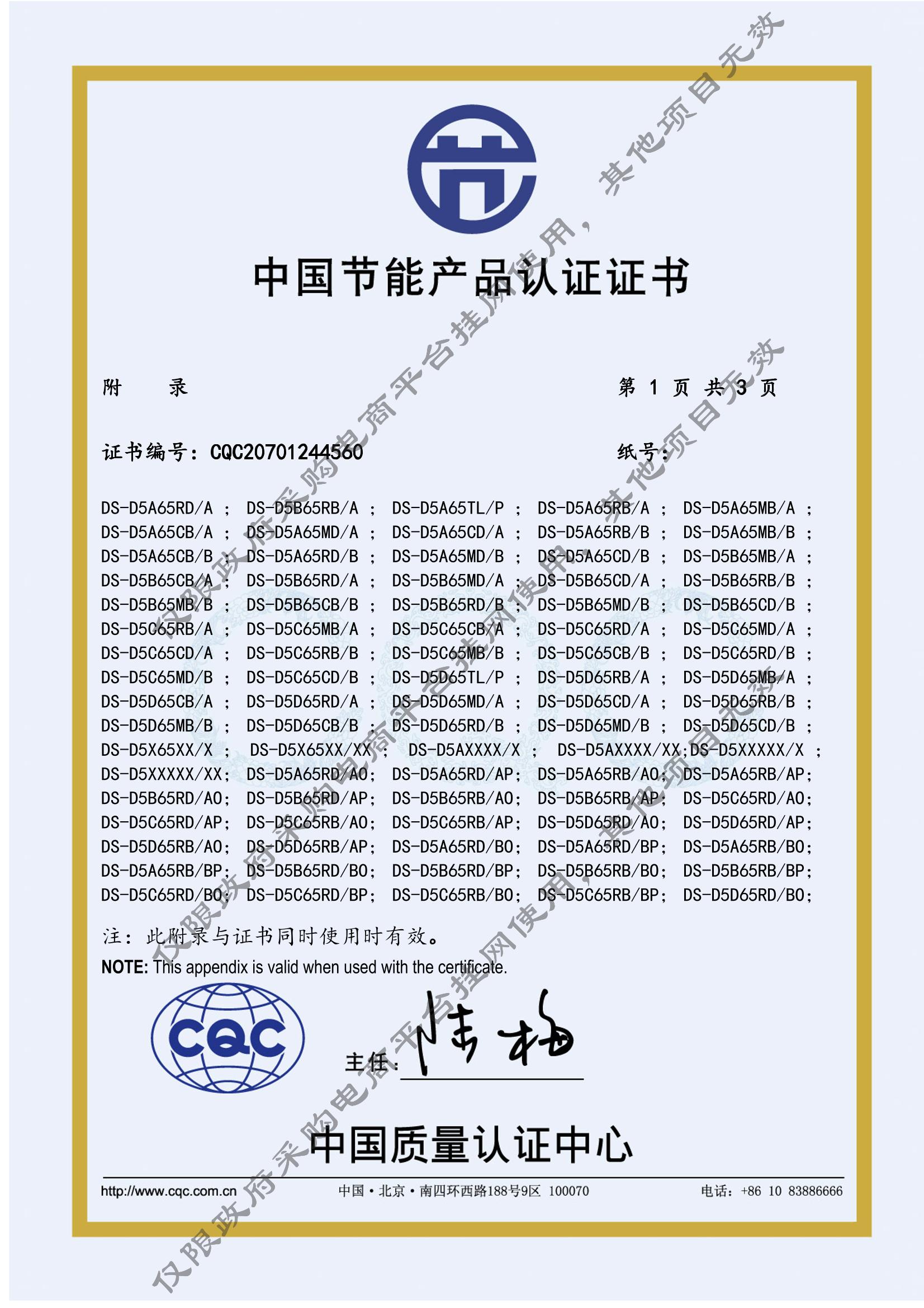 [节能产品证书编号] CQC20701244560