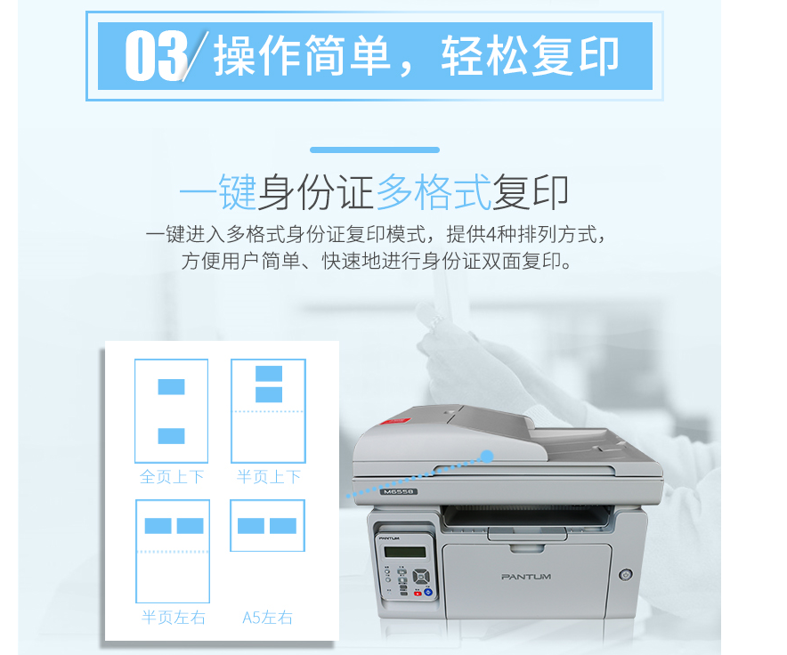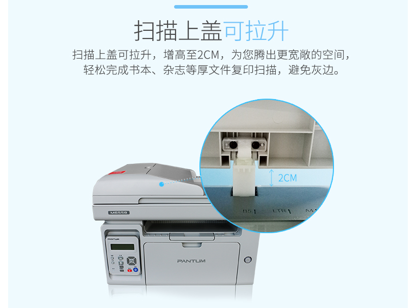 商品属性 [品牌] 奔图 [型号] M6558 [产品类型] 黑白激光 [打印分辨率] 1200×1200DPI [节能证书编号] CQC20701236145 [涵盖功能] 打印/复印/扫描 [最大处理幅面] A4 [黑白打印速度] 22ppm [双面打印] 不支持 [质保时间] 1年 [售后服务内容] 1年上门