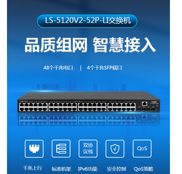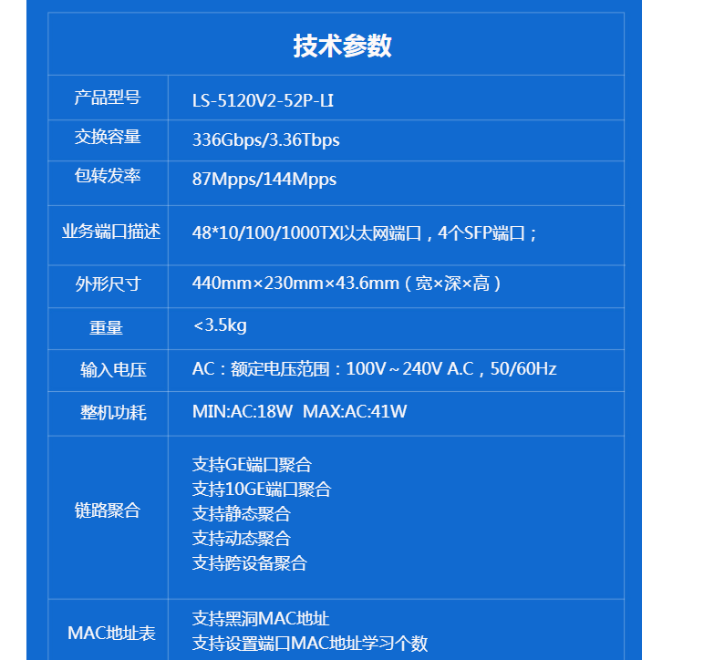 商品属性 [品牌] 华三 [参数] 速度 10/100/1000Mbps 网络标准 以太网 [型号] LS-5120V2-52P-LI [商品单位] 台