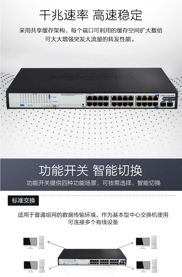 商品属性 [品牌] 华三 [参数] 交换方式 存储转发 交换机网络标准 IEEE 802.1D,IEEE 802.3 网络管理 支持 [型号] Mini S1226F-HPWR [商品单位] 台