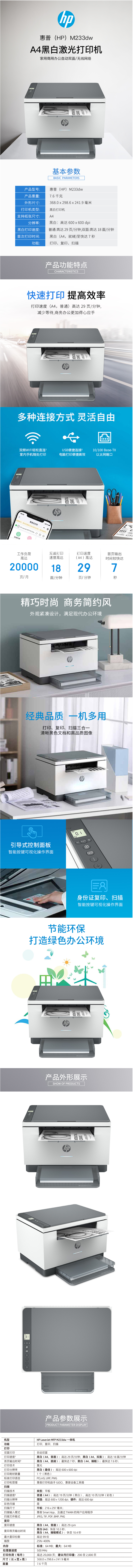 惠普 LaserJet MFP M233dw打印复印扫描激光多功能 双面三合一无线打印机