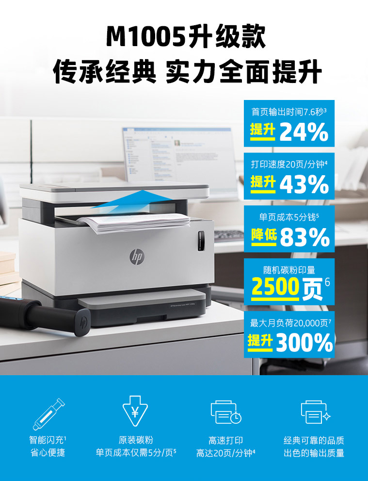 商品属性 [品牌] 惠普 [型号] Laser NS MFP 1005n [商品单位] 台 [产品类型] 黑白激光 [涵盖功能] 打印/复印/扫描 [最大处理幅面] A4 [双面打印] 不支持 [质保时间] 1年 [售后服务内容] 1年质保
