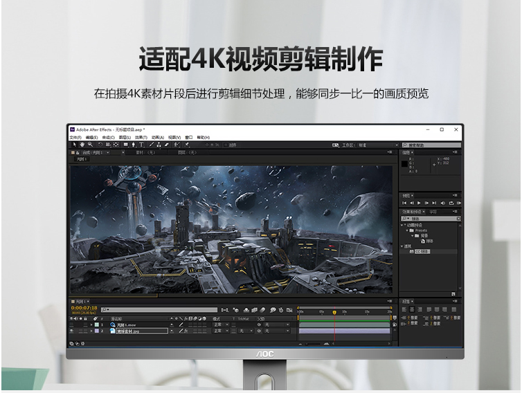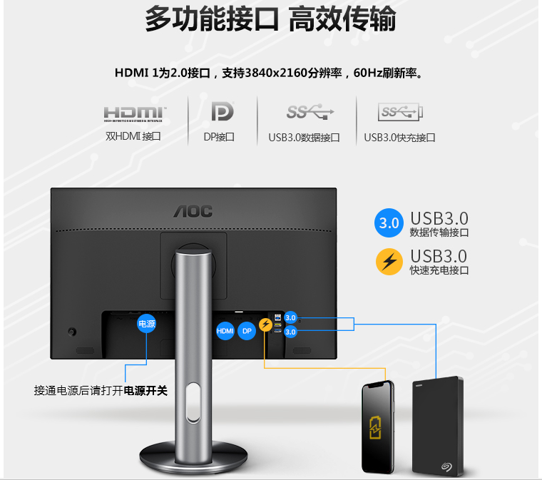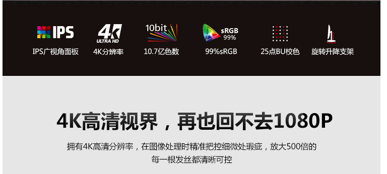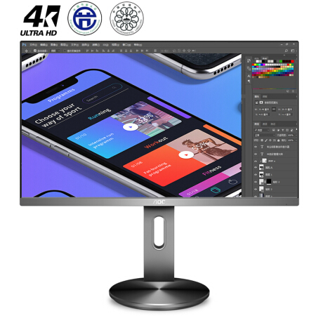 AOC 27英寸 4K高清 IPS广视角 微框 99% sRGB 商用办公节能 低蓝光不闪旋转升降PS4液晶显示器 U2790PQU