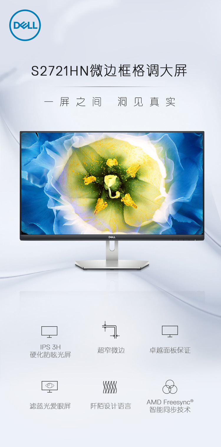戴尔(DELL) S系列 IPS(3H)屏微边框全高清大屏显示器 S2721HN