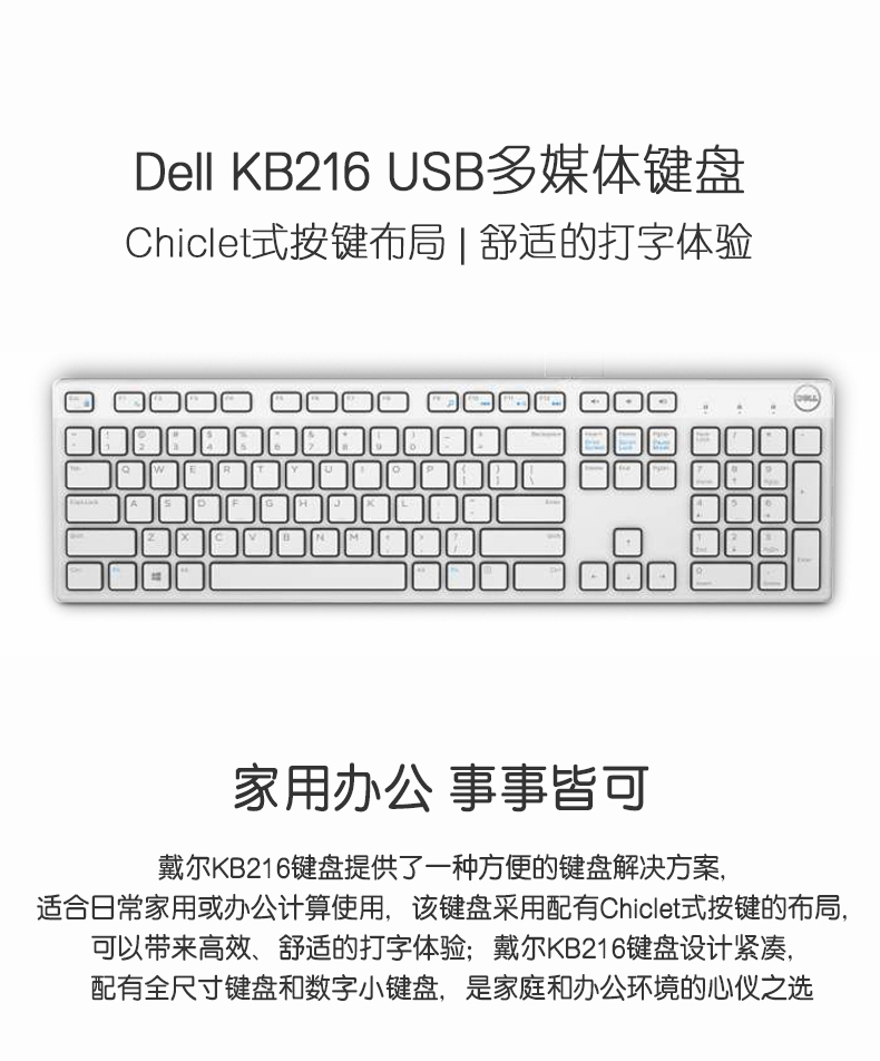 戴尔(DELL)键盘有线USB接口办公家用多媒体键盘 KB216 黑色(适用于联想,华为,惠普等品牌台式机)
