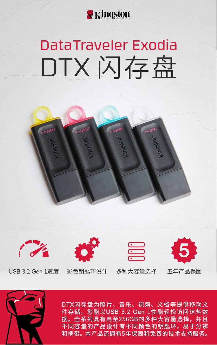 金士顿(Kingston)u盘 USB3.2 Gen 1 DTX高速车载闪存优盘 32GB